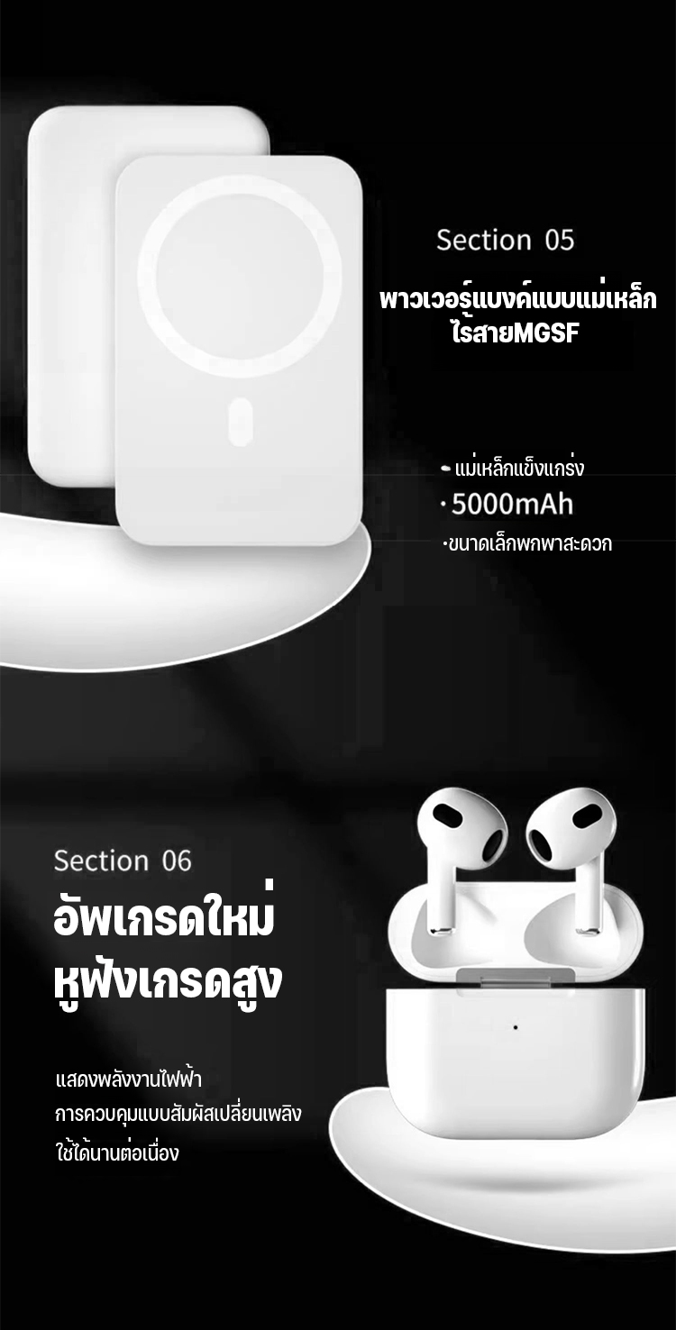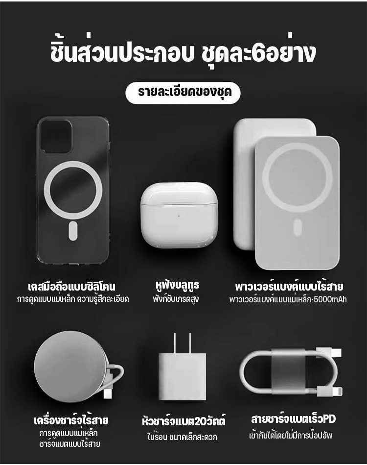 ชุดพาวเวอร์แบงค์เคสโทรศัพท์มือถือแม่เหล็กหูฟังแบบ6อย่าง
